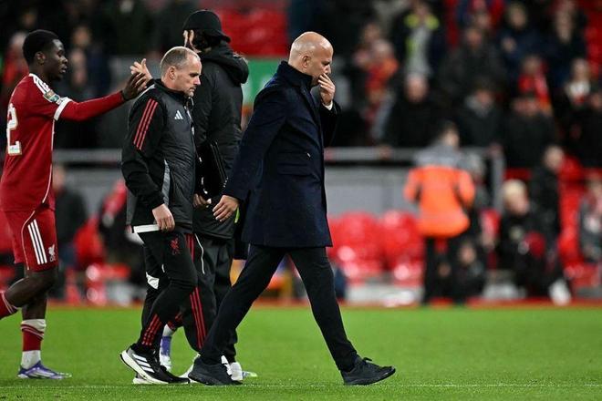 这场溃败也让备受质疑的主帅斯洛特,再次引发了球迷的强烈不满。当比赛尾声,利物浦败局已定时,许多主场的利物浦球迷不再高唱“永不独行”的队歌,而是纷纷失望提前退场,以此抗议俱乐部和主帅斯洛特。